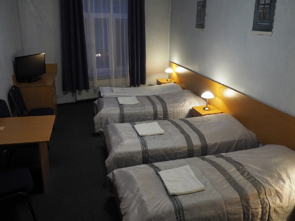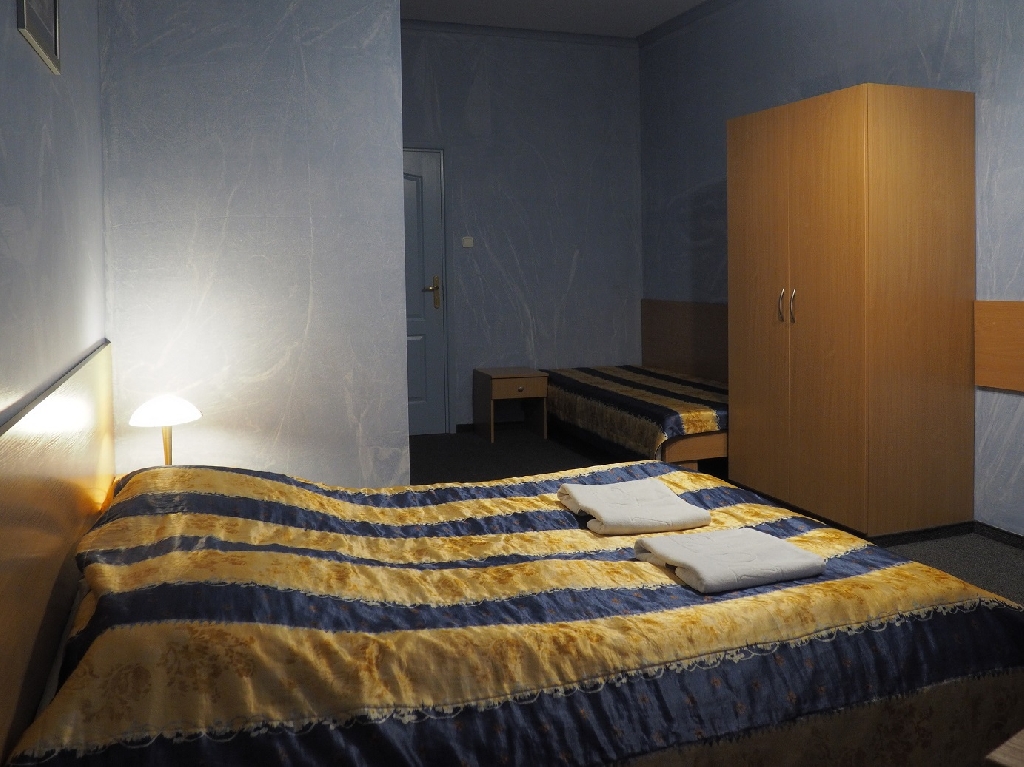 і лыжкі). Кошт за пакой прадугледжвае сняданак, прыгатаваны ў выглядзе шведскага стала ў рэстаране «Чорны кацёл», які знаходзіцца на першым паверсе будынка. Меню рэстарана